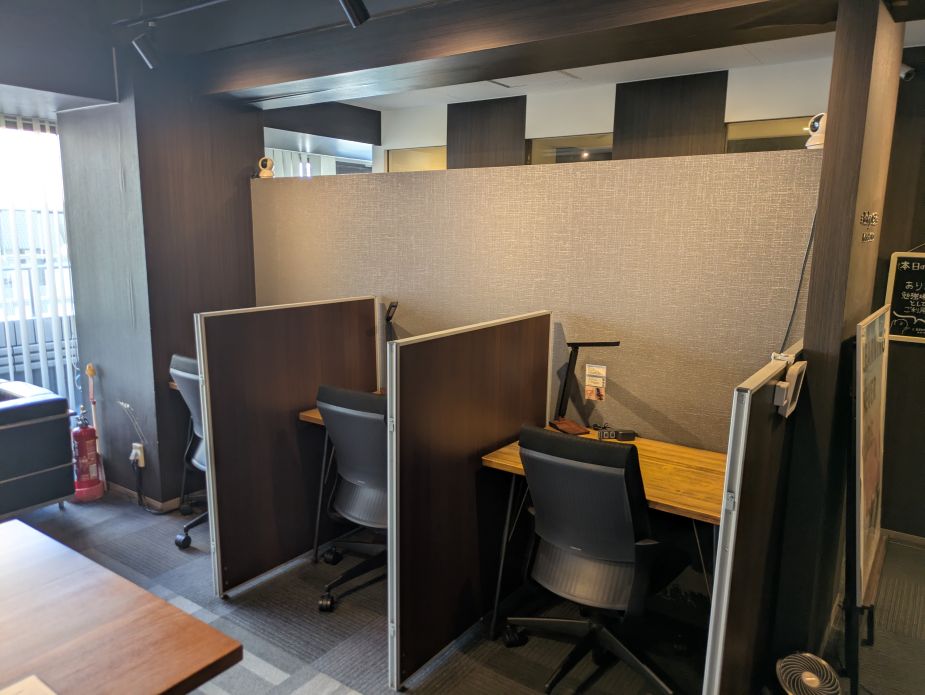 仕事場所としてご利用も可能ですが、10分以上のWebミーティング・電話・会話・打ち合わせを行う場合は店外でお願しております。