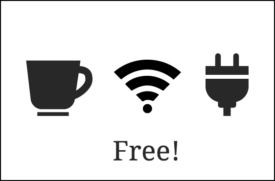 ネットワーク名・パスワードは受付もしくは各お席に掲示しております。